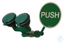 - Bedienplatte aus Stahl, chemikalienbeständig grün pulverbeschichtet, Länge 130 mm, mit großem Signal "PUSH", langnachleuchtend gemäß DIN 67510
